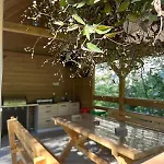 This villa includes an outdoor dining area with a refrigerator, a cooktop, and kitchenware. Snow skiing, hiking, and fisheries are available for guests.